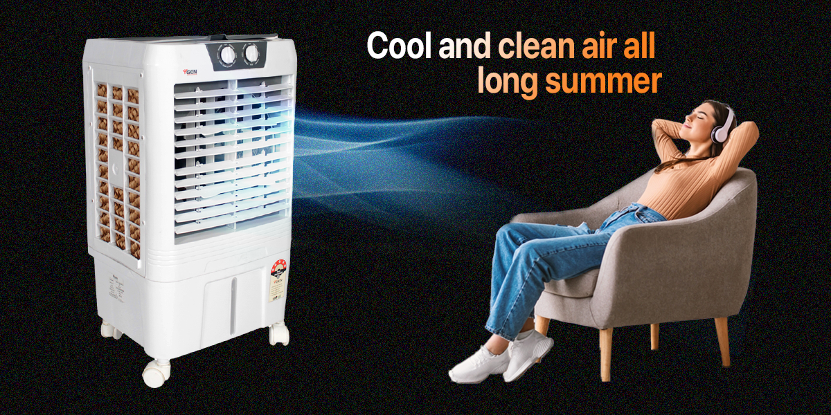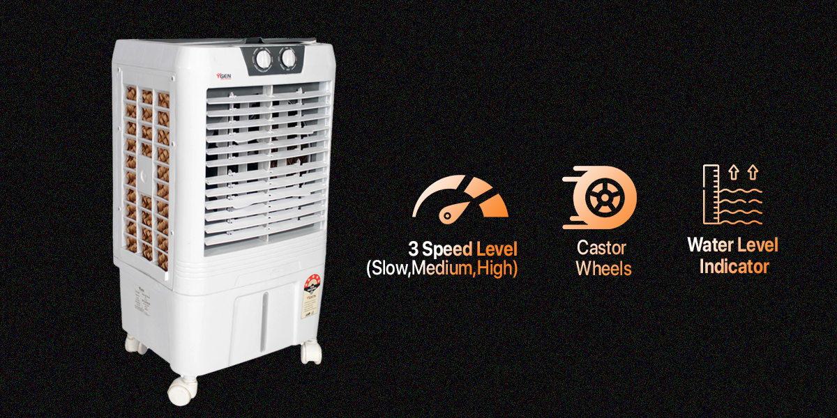 The Aster YGen 35L Desert Air Cooler is the perfect solution for efficient and portable cooling, ideal for homes and small spaces. Designed with a durable copper motor for enhanced performance, this cooler features three-side honeycomb cooling pads to ensure optimal airflow and faster cooling. Its powerful air throw ensures even cooling across large rooms, while the 3-speed control allows you to adjust settings based on your comfort. This energy-efficient cooler is compatible with batteries, making it a reliable choice during power outages. With low power consumption and a generous 35-liter tank capacity, it ensures long hours of uninterrupted cooling. Backed by a 2-year motor warranty, the Aster YGen 35L guarantees quality and peace of mind. Perfect for modern homes, it combines performance, portability, and affordability.