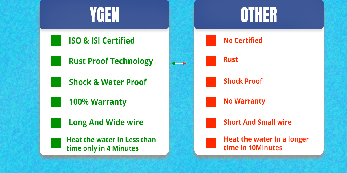Experience fast and efficient water heating with the YGen Immersion Water Rod, now featuring Turbo Heat Technology for quicker results. Crafted with a durable Copper* heating element, it ensures superior heat transfer, energy efficiency, and long-lasting performance. This ISO-certified appliance is perfect for everyday use at home, in hostels, or offices.